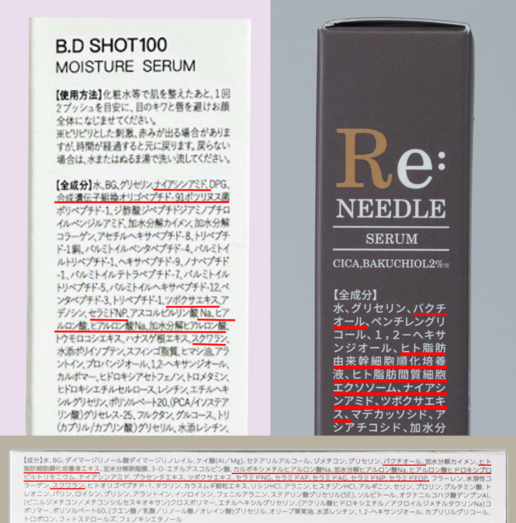 リニードルを今すぐ試してみる一方、B.Dショットはナイアシンアミドやボツリヌス菌由来成分などを配合。